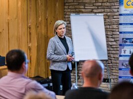 Prakticky zamerané vystúpenie plné príkladov vystriedala prednáška Ing. Evy Marsovej, z Úradu pre normalizáciu, metrológiu a skúšobníctvo SR na tému Tvorba technických noriem na medzinárodnej, európskej a národnej úrovni. Okrem procesu tvorby technických noriem sa snažila prezentujúca zamerať aj na užitočné odkazy na linky, ktoré sú zaujímavé pre technickú prax a vysvetlila predmet činnosti TK 39 Plasty.