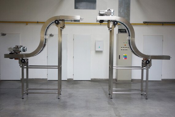 - dopravníky a elevátory s modulárnymi a doskovými pásmi