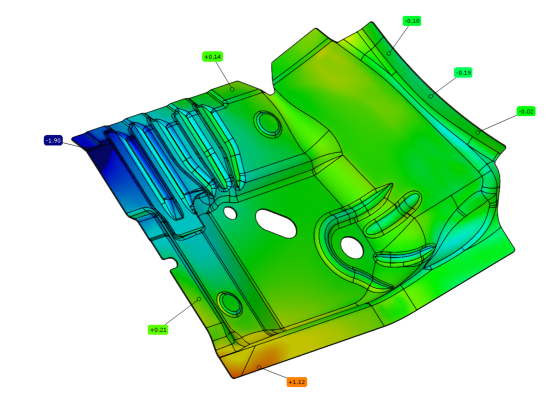 - porovnanie skenovaných dát s 3D modelmi alebo výkresovou dokumentáciou,