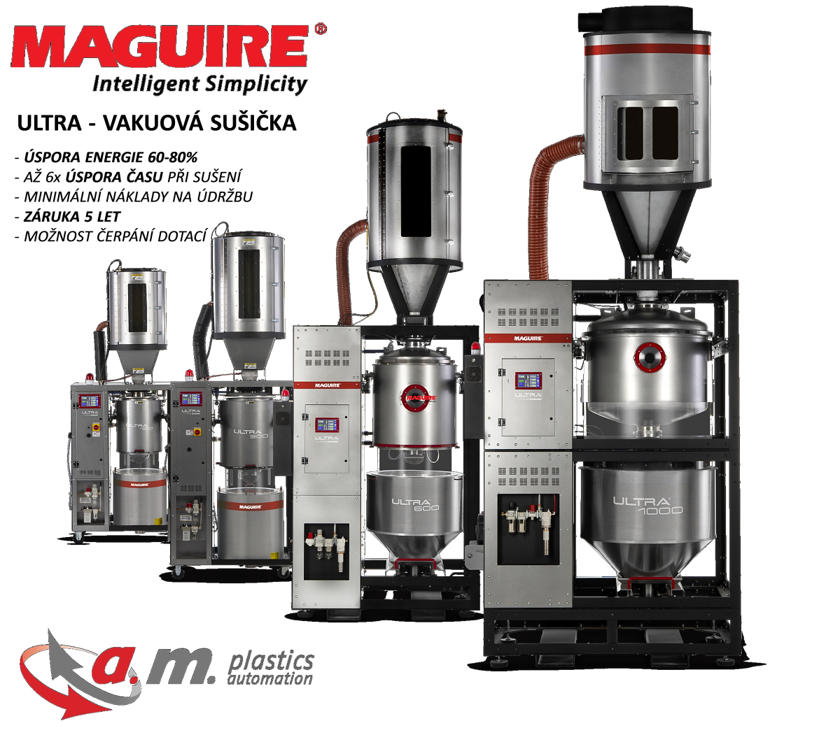 Díky spolupráci s oběma těmito výrobci vám můžeme nabídnout jak nejmodernější technologie v oblasti sušení a směšování materiálu, MAGUIRE s unikátní 5letou zárukou na stroje, tak i široké spektrum všech možných periferií v tom nejlepším poměru kvalita/cena, SHINI, zařízení na sušení a směšování materiálu, temperaci, chlazení, mletí odpadů a jejich recyklaci, dopravu a manipulaci s výrobky, barvící jednotky atd.