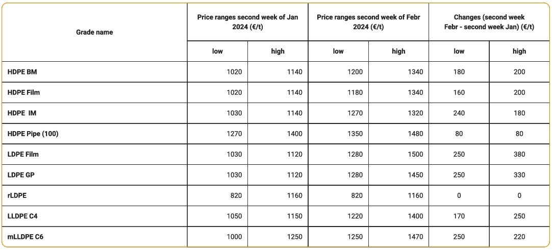 Dôvody zvýšenia cien polyetylénu vo februári 2024