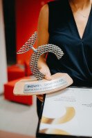 Vyhlásenie víťaza ceny INOVÁTOR ROKA 2025: zľava župan Trnavského kraja Jozef Viskupič, organizátorka podujatia Anna Čaplovičová a moderátor Ľubomír Straka |
