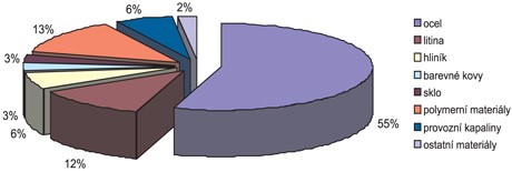 Jednotlivé druhy materiálů jsou v osobním automobilu zastoupeny procentuálně takto:
