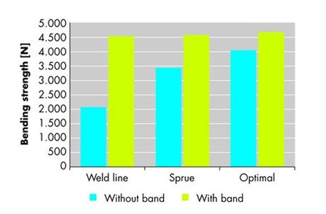 | Porovnání maximálního napětí (pevnosti) dílů nevyztužených a vyztužených nekonečnými vlákny. |