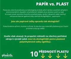 | EKO taška od Granitolu - Vyrobena ze 100% recyklovaného materiálu, 100% recyklovatelná, šetrná k přírodě a má vysokou nosnost. |