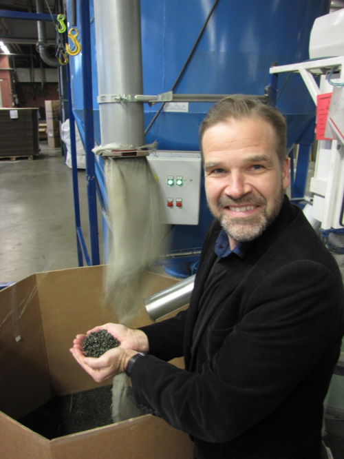 Obr.: Fredrik Holst z Rondo Plast AB - dodávateľ recyklovaného materiálu na výrobu kancelárskeho kresla Capisco, ktoré bolo ocenené ako „Najlepší produkt z recyklovaného materiálu“ |