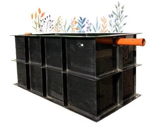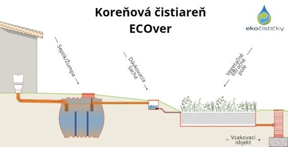 - Koreňová čistiareň odpadových vôd (čistička) ECOver, ktorá funguje bez elektrickej energie a bez súčiastok. Je vhodná pre 6-7 obyvateľov a maximálne zaťaženie 900 litrov odpadovej vody za deň.