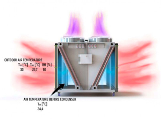Patentované panely PreCooll Oxyvap® vytvárajú okolo vášho chladiaceho systému chladnú mikroklímu. Chladenie odparovaním znižuje teplotu vstupujúceho vzduchu až o 25 °C. Adiabatický predchladič PreCooll výrazne zvyšuje chladiacu kapacitu, takže aj v najteplejších dňoch je možné hlboké chladenie.