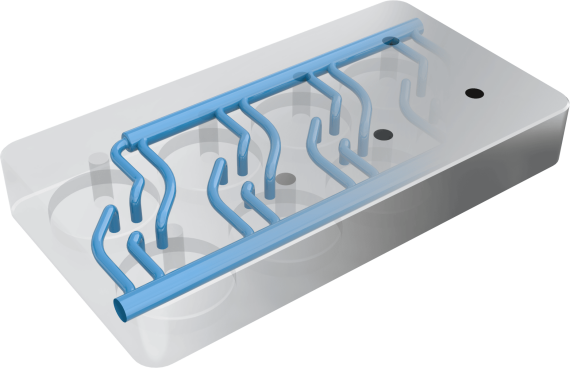 Spoločnosť HTS IC s.r.o. poskytuje pokročilé riešenia konformného chladenia pre vstrekovanie plastov. Pomocou aditívnej výroby vytvárame na mieru navrhnuté konformné kanály, ktoré presne zodpovedajú tvaru vašej formy.