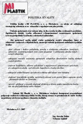 Výroba plastových výliskov pre strojársky, automobilový, elektrotechnický a textilný priemysel, ako aj spotrebné výlisky pre potravinársky priemysel.