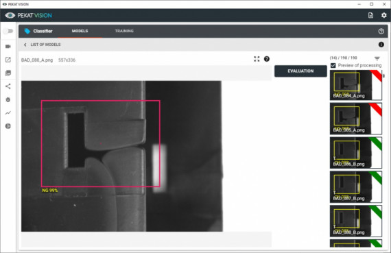 Softvér PEKAT VISION obsahuje tú správnu sadu AI nástrojov na kontrolu kvality výrobkov. Tieto nástroje môžu byť kombinované a prepojené so skriptami pre zvýšenie spoľahlivosti detekcie. Naše skúsenosti ukazujú, že kombinácia týchto nástrojov dokáže vyriešiť takmer každú úlohu týkajúcu sa vizuálnej inšpekcie vo výrobe.