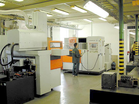 Vyrábame formy o veľkosti modulu 500 x 500 mm a hmotnosti do 800 kg. Výhodou je umiestnenie nástrojárne v jednom areáli s výrobou plastov vstrekovaním.