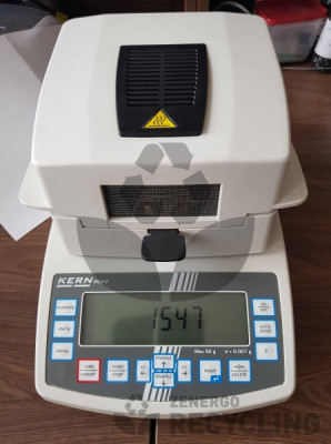 Analyzátor vlhkosti KERN, ktorý využíva sušenie vzorky pomocou infračerveného žiariča o výkone 400W a výsledky vlhkosti sú stanovené v %.
